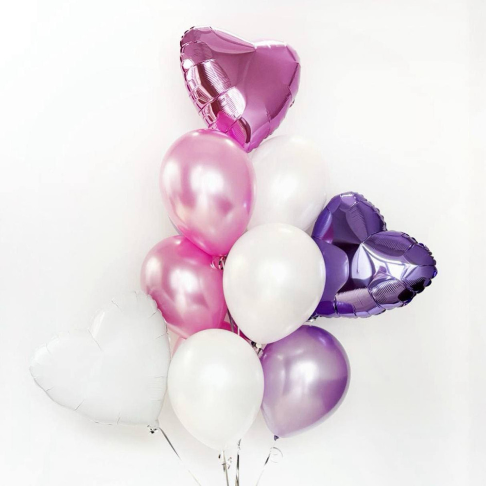 Букет воздушных шаров сиреневый/розовый/белый с сердцами