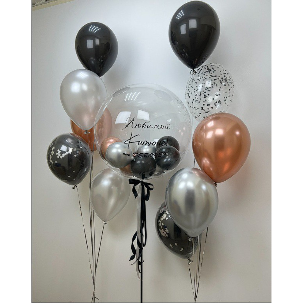 1 большой шар баблс с шариками и текстом на ваш выбор.