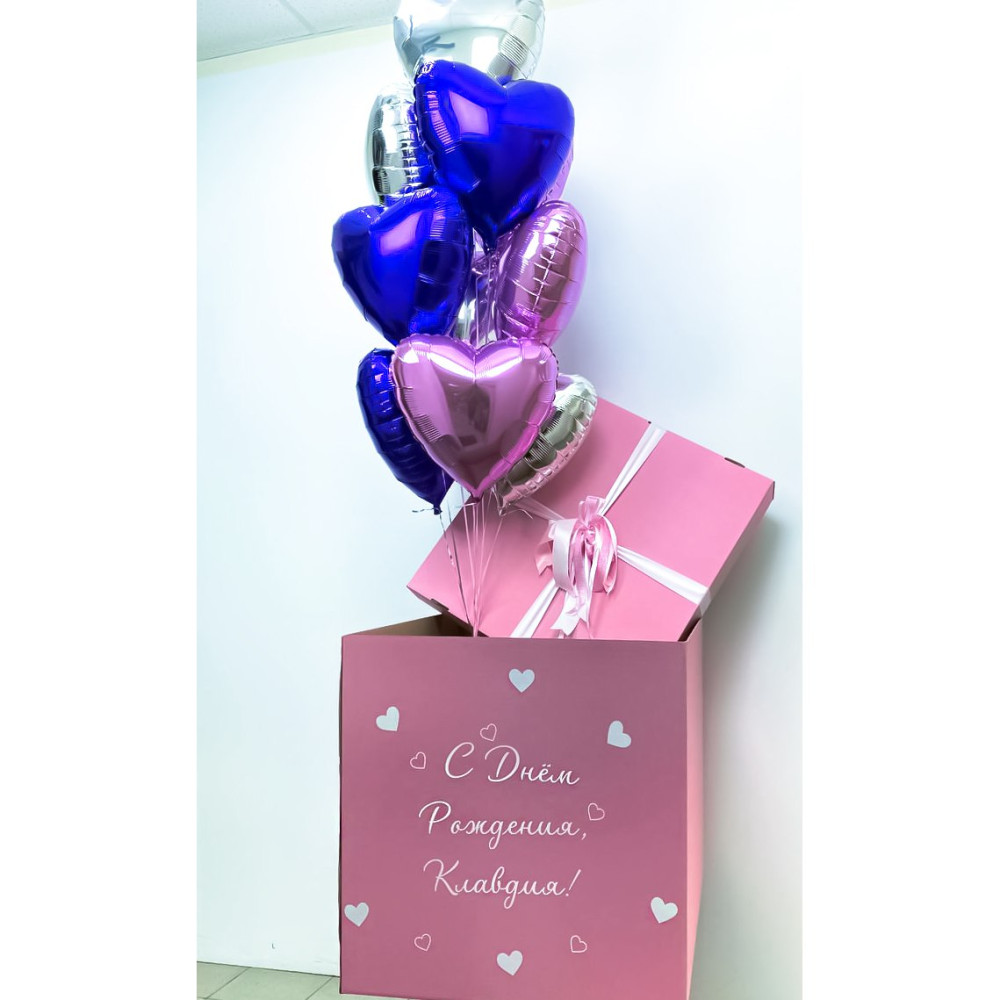 Букет шаров в розовой коробке для девушки