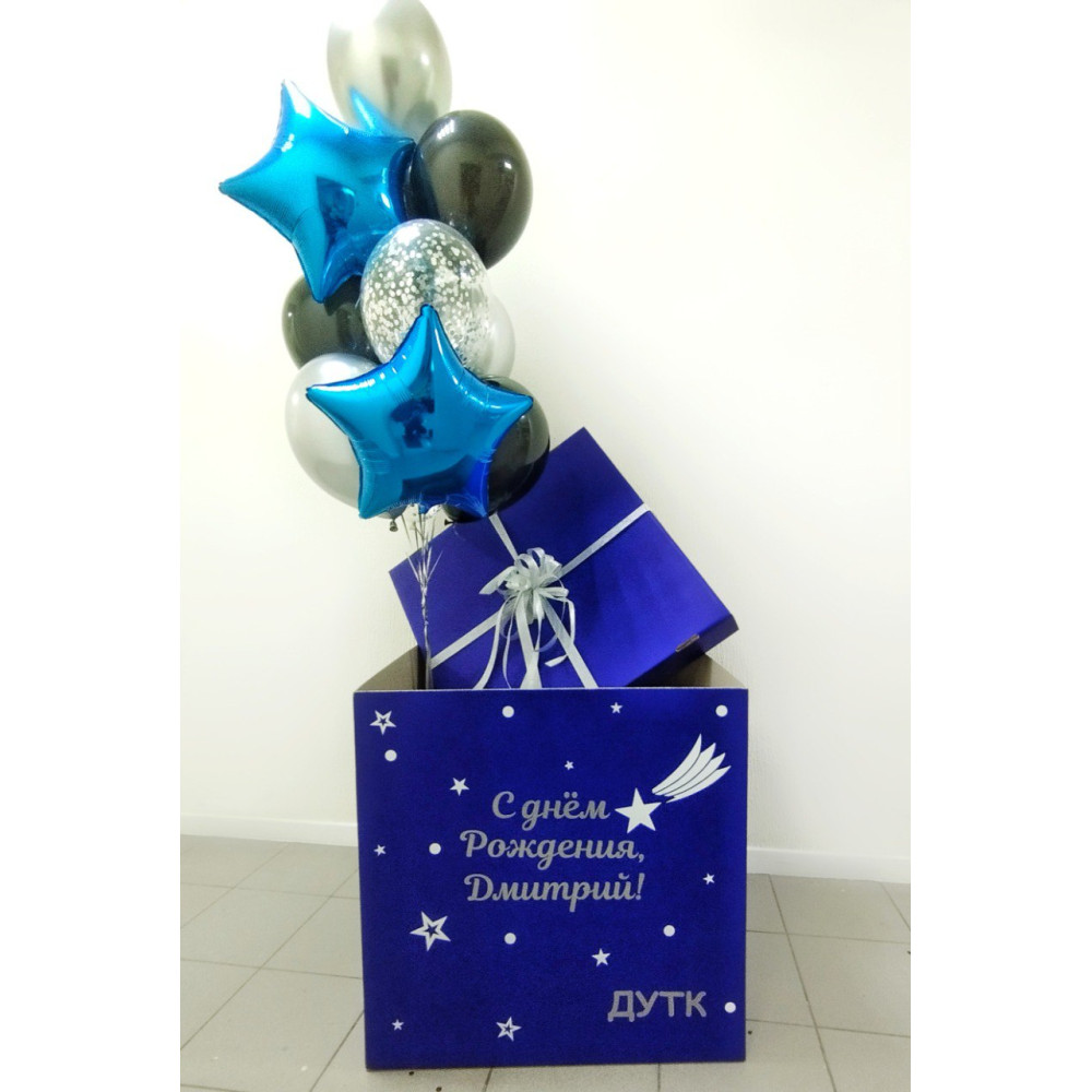 Букет шаров в синей коробке для мужчины