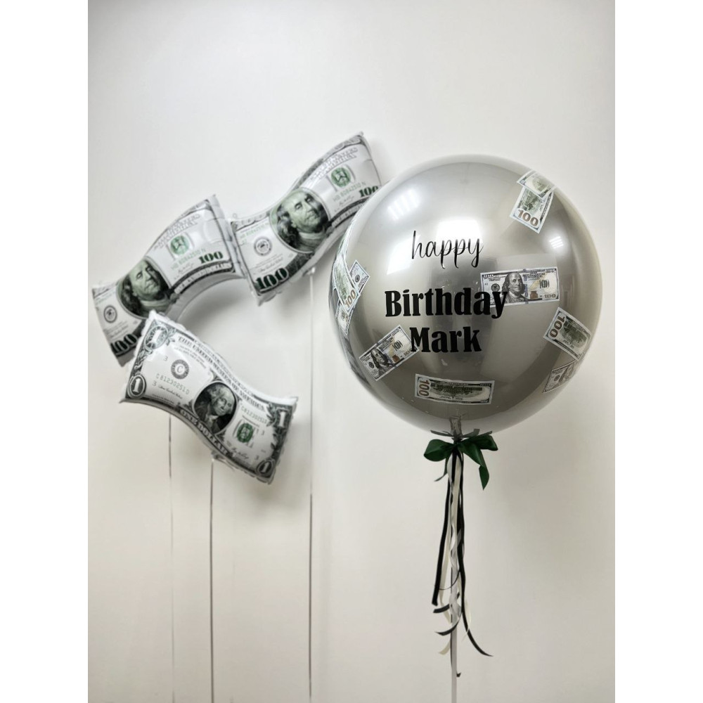 1 большой зеркальный шар с долларами и вашим текстом.