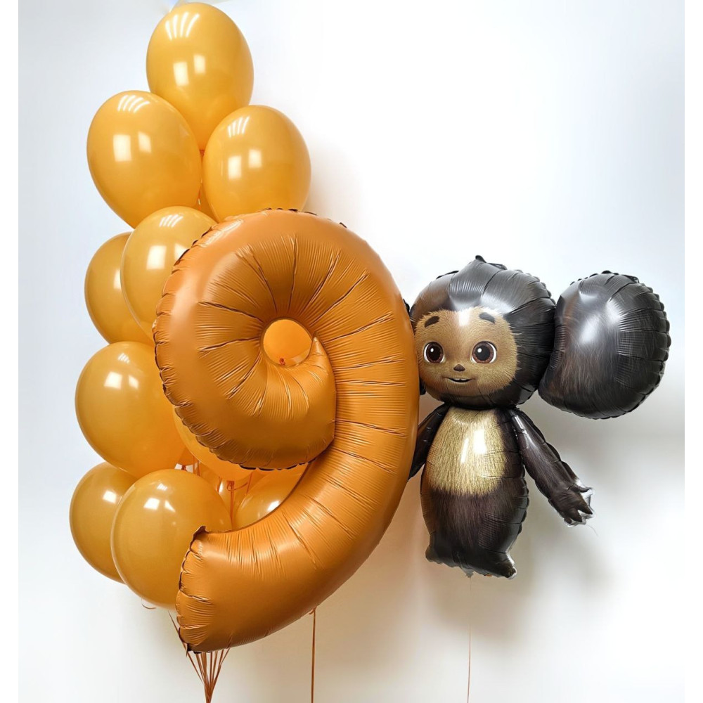 Высота около 2 метров, все шарики надуты гелием, на ленточках с грузиком.