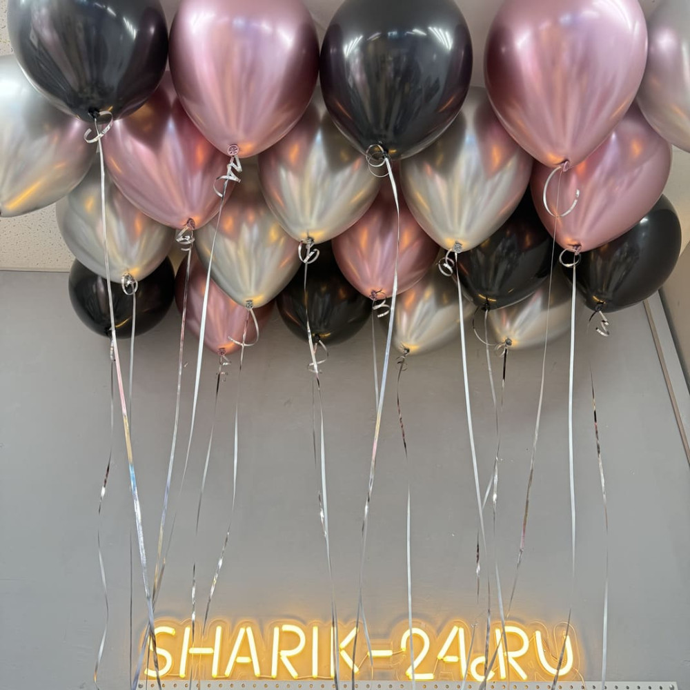 Гелиевые шарики хром серебро, розовые и черные