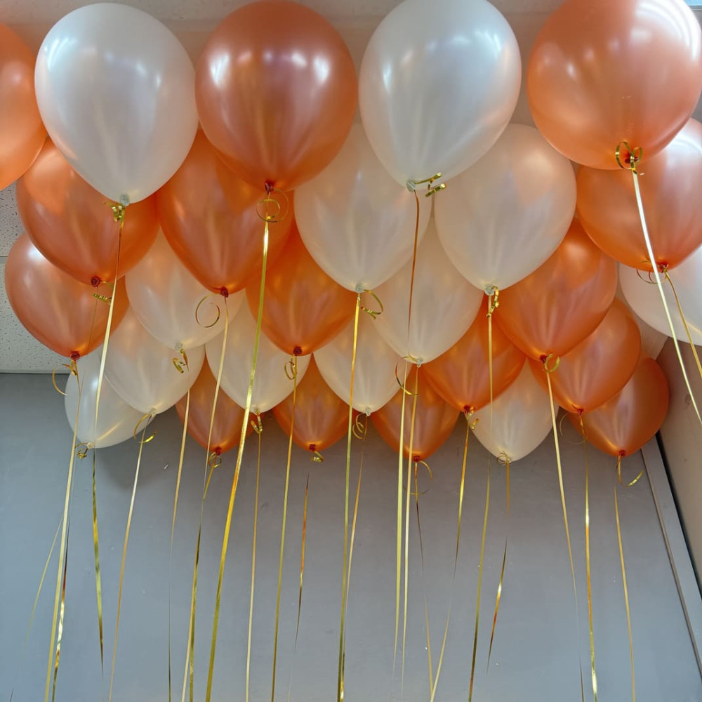 Размер каждого шара — 30 см, что делает их заметными и эффектными. Шары закреплены на ленточке, что упрощает их использование и размещение.