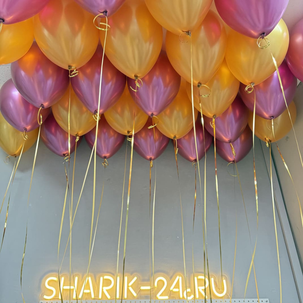 Шарики под потолок: металлик золото и хром малиновый