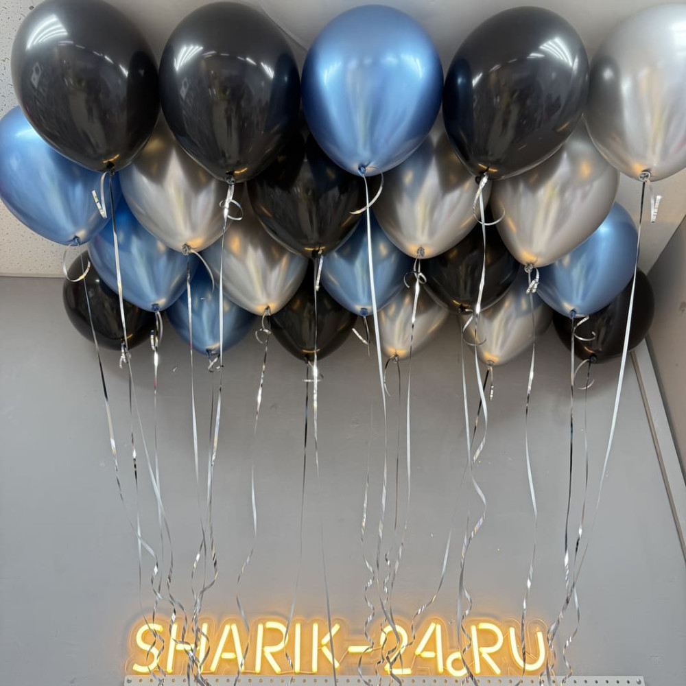 Размер каждого шара — 30 см, что делает их заметными и эффектными. Шары закреплены на ленточке, что упрощает их использование и размещение.