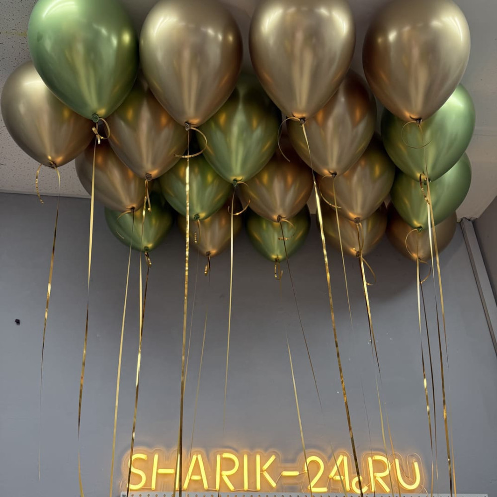 Размер каждого шара — 30 см, что делает их заметными и эффектными. Шары закреплены на ленточке, что упрощает их использование и размещение.