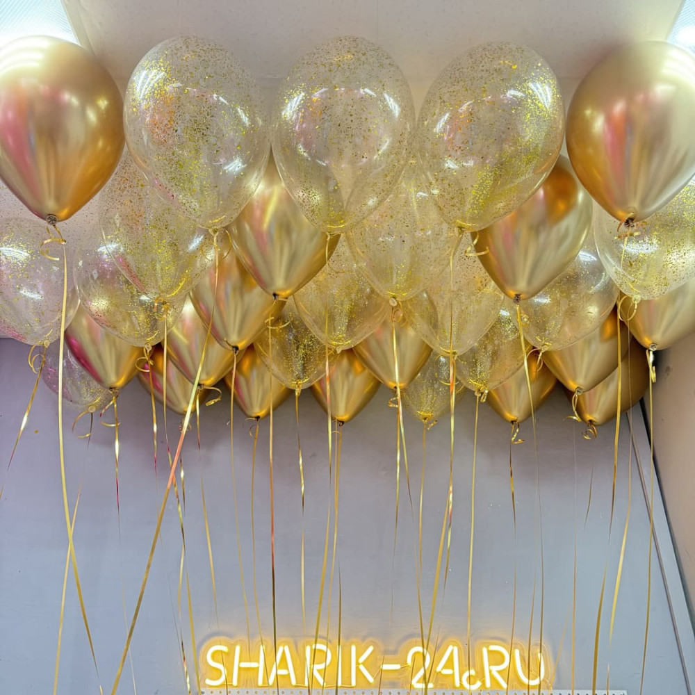 Шары хром золото и шары с конфетти золото